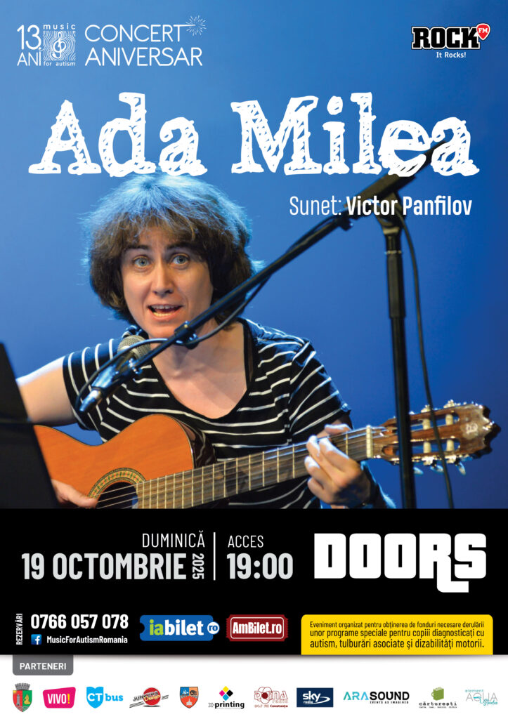 Concertul din 19 octombrie 2025 va veni în sprijinul campaniei „Music for Autism”. Iubitorii muzicii folk şi nu numai sunt așteptați, cu mic, cu mare în Club Doors Constanţa, unde vor fi întâmpinați de Ada Milea. Ada Milea o figură, care s-a remarcat în peisajul muzical românesc graţie versurilor de un umor inconfundabil, ne va încânta pe toată durata evenimentului.